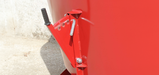 A mineral feed funnel can be mounted at the mixing container on request. This makes it easier to fill in smaller quantities of fodder such as e.g. mineral feed or lime.